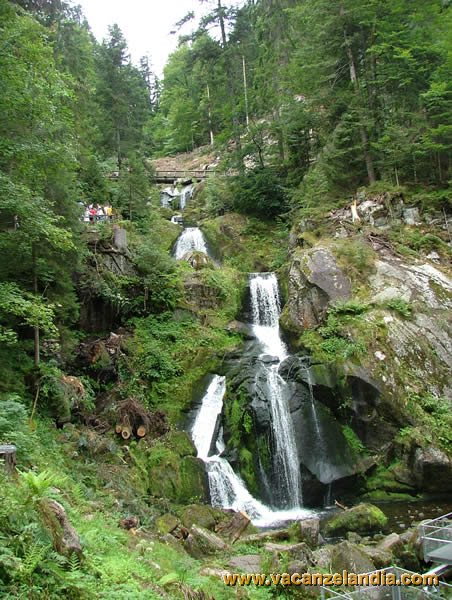 Tanti orologi a cucù allietano il corso principale di Triberg, in bella mostra nelle vetrine o addirittura come elementi espositivi. Triberg è famosa per le cascate più alte della Germania (alte m 163 con 7 balzi). All'entrata del parco in cui si trovano le cascate (a pagamento) acquistiamo un sacchetto di noccioline per gli scoiattoli.
