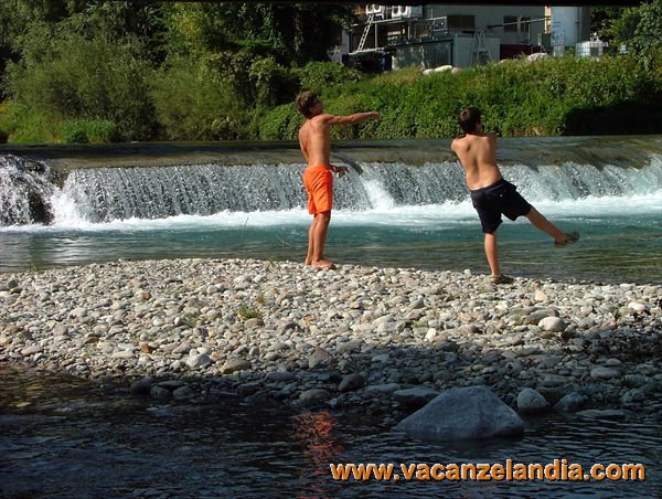 Decidiamo di scendere a Capo di Ponte utilizzando la strada principale, più lunga ma meno ripida. Rientriamo in camper a metà pomeriggio, un po' accaldati e così decidiamo di raggiungere la spiaggetta che si trova nelle adiacenze dell'area camper (si accede dal sentiero natura fluviale). Un angolo tranquillo dove il torrente Clegna si immette nel fiume Oglio, dove naturalmente è possibile anche bagnarsi e prendere il sole. Filippo fa amicizia con alcuni ragazzini coetanei, uno è anche ospite all'area camper; Lorenzo ed io ne approfittiamo per rilassarci.