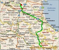 La Statale E45 è molto trafficata, restiamo praticamente in coda per un paio d'ore. Verso le 20.00 usciamo a BAGNO DI ROMAGNA (FC) per la cena, le docce e poi ripartiamo.