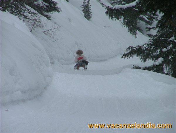 Scendiamo al lago con gli slittini (noleggiati al rifugio), un'esperienza davvero unica!