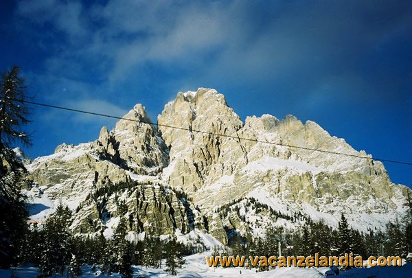 Attorniato da stupende cime dolomitiche tra cui spicca a fronte imponente il Sorapiss (m 3205 s.l.m.). La superficie del lago è ghiacciata (leggiamo che si tengono qui anche gare di polo!).