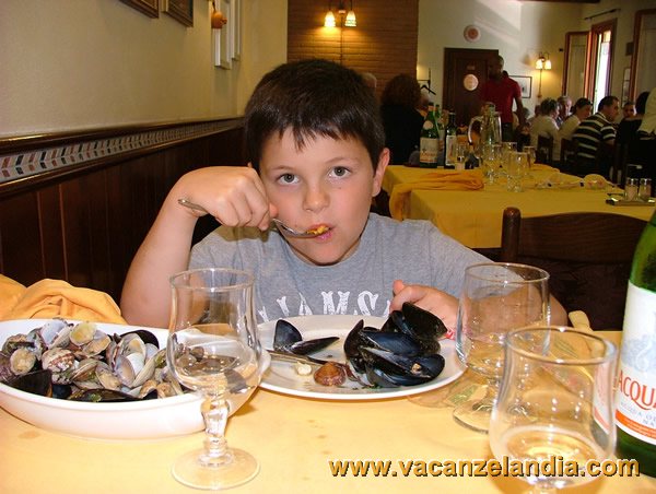 Primi piatti: risotti e spaghetti conditi con il pesce o molluschi di mare. Nella zona è possibile gustare anche la granseola o grancevola (un crostaceo tipo granchio) cucinata in vari modi, la si può trovare sia come condimento nei primi piatti che come antipasto, ma anche come secondo piatto.