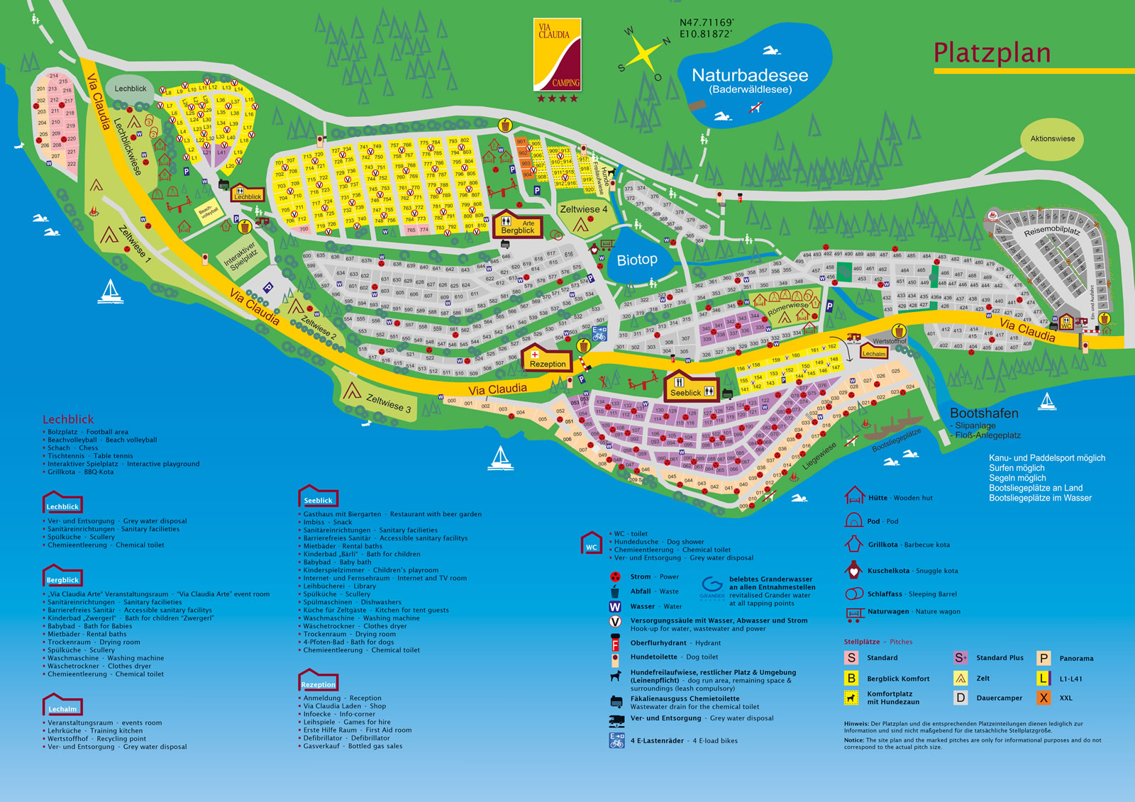 Il Camping Via Claudia è un grande campeggio dotato di ampi spazi e anche nei periodi di massima affluenza, è comunque molto vivibile. Dispone di ben 850 piazzole di differenti tipologie, da quella direttamente sul lago alla XXL per chi necessita di tanto spazio. Queste varietà di piazzole permettono a ciascuno di trovare il giusto comfort per trascorrere bellissime vacanze con il camper, caravan e tende anche con il cane al seguito.