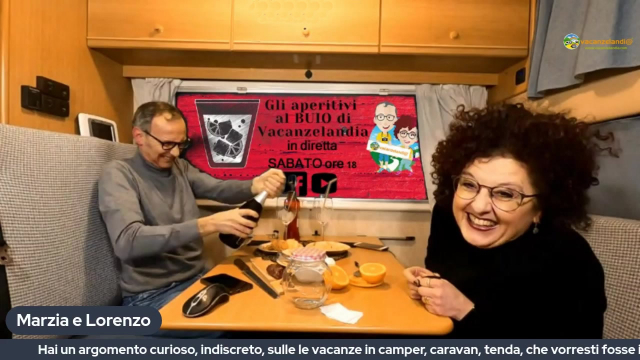 20 gennaio 2021 - Annunciata come la novità dell'anno 2021 (vedi NEWS - in diretta gli Aperitivi al buio), si è alzato il sipario, o meglio si sono aperte le tendine della dinette, sabato 16 gennaio, puntualissimi alle ore 18, in diretta LIVE su Facebook e YouTube per questo appuntamento con gli Amici di Vacanzelandia che ci sono collegati e insieme a loro abbiamo brindato e soprattutto "chiacchierato".