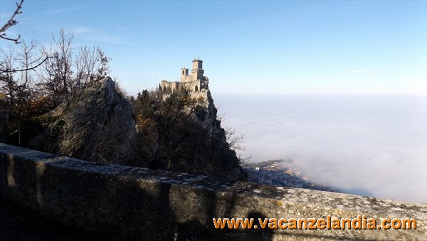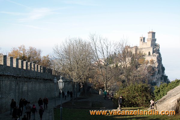 La camminata verso le tre torri, una passeggiata magica sul crinale del monte Titano, tre simboli che caratterizzano San Marino. Una camminata nel tempo, nella storia, con lo sguardo verso il paesaggio che in molti punti è possibile scorgere. La prima è la Guaita (o la Rocca), visitabile, è caratterizzata da due ordini di mura, è di pianta pentagonale e poggia direttamente sulla roccia del monte Titano. La seconda torre è raggiungibile da un camminamento molto suggestivo, si attraversa anche il passo delle streghe, un punto di suggestione e/o leggenda (si dice che qui vi siano curiosi fenomeni, più probabilmente creati dalla suggestione ed evocati dal nome stesso del passaggio, per il meccanismo della 'magia simpatica).