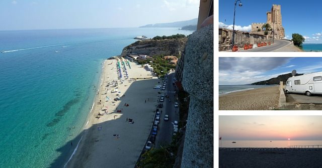 Rientrati al camper per pranzo e per un riposino, verso le 15 riprendiamo l’escursione verso Ricadi e Capo Vaticano attrezzati con zaino e tutto il necessario per un bagno in mare, il tratto di costa tirrenica che percorriamo è sicuramente una delle più belle del Mediterraneo, infatti sono sorti parecchi villaggi turistici.