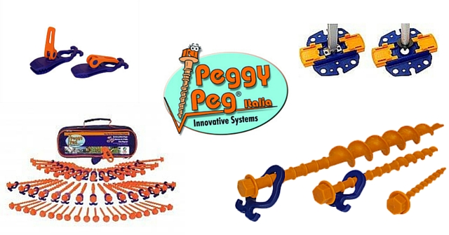 Il sistema Peggy Peg ® è innovativo ed ha aperto una nuova generazione nei sistemi di fissaggio a terra per tende, verande, tendalini, ma anche di tappeti, pedane, teli e teloni, cavi e tante altre applicazioni utili per una vacanza all'aria aperta senza problemi e senza faticare troppo.